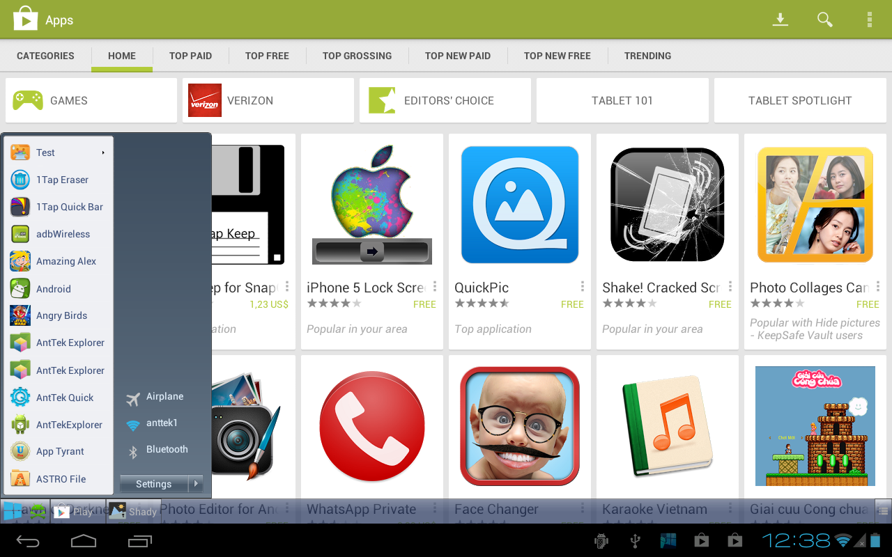Tap on the "start" button to open taskbar. Scroll up/down to launch app. If you add folders, contacts, settings, click on theme to execute.